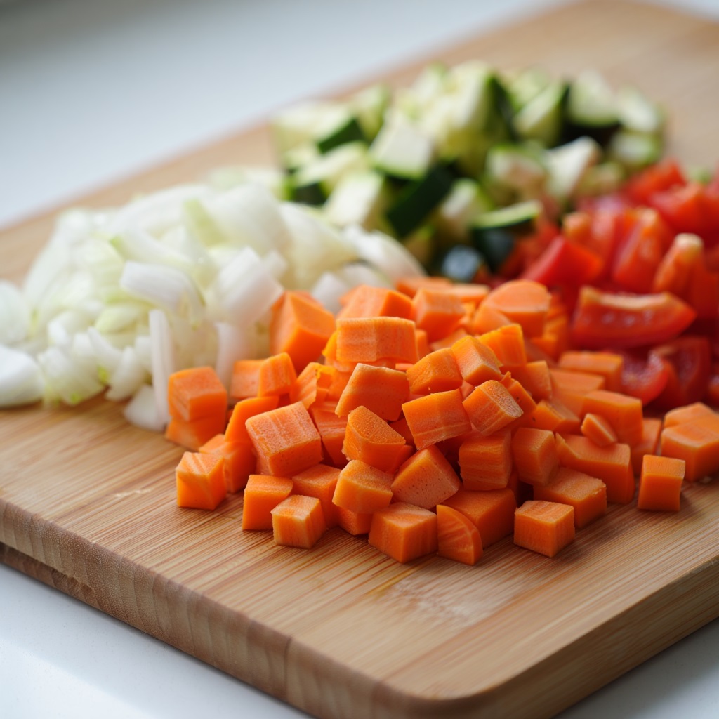 Результат: Крахмал стабилизируется, овощи станут плотными. Вы сможете нарезать их идеальными, ровными кубиками, которые будут держать форму даже после перемешивания с соусом.