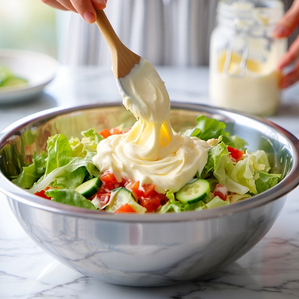 Результат: Соус приобретет ту самую уникальную пикантную нотку, которая идеально свяжет все ингредиенты «Царского» оливье воедино.