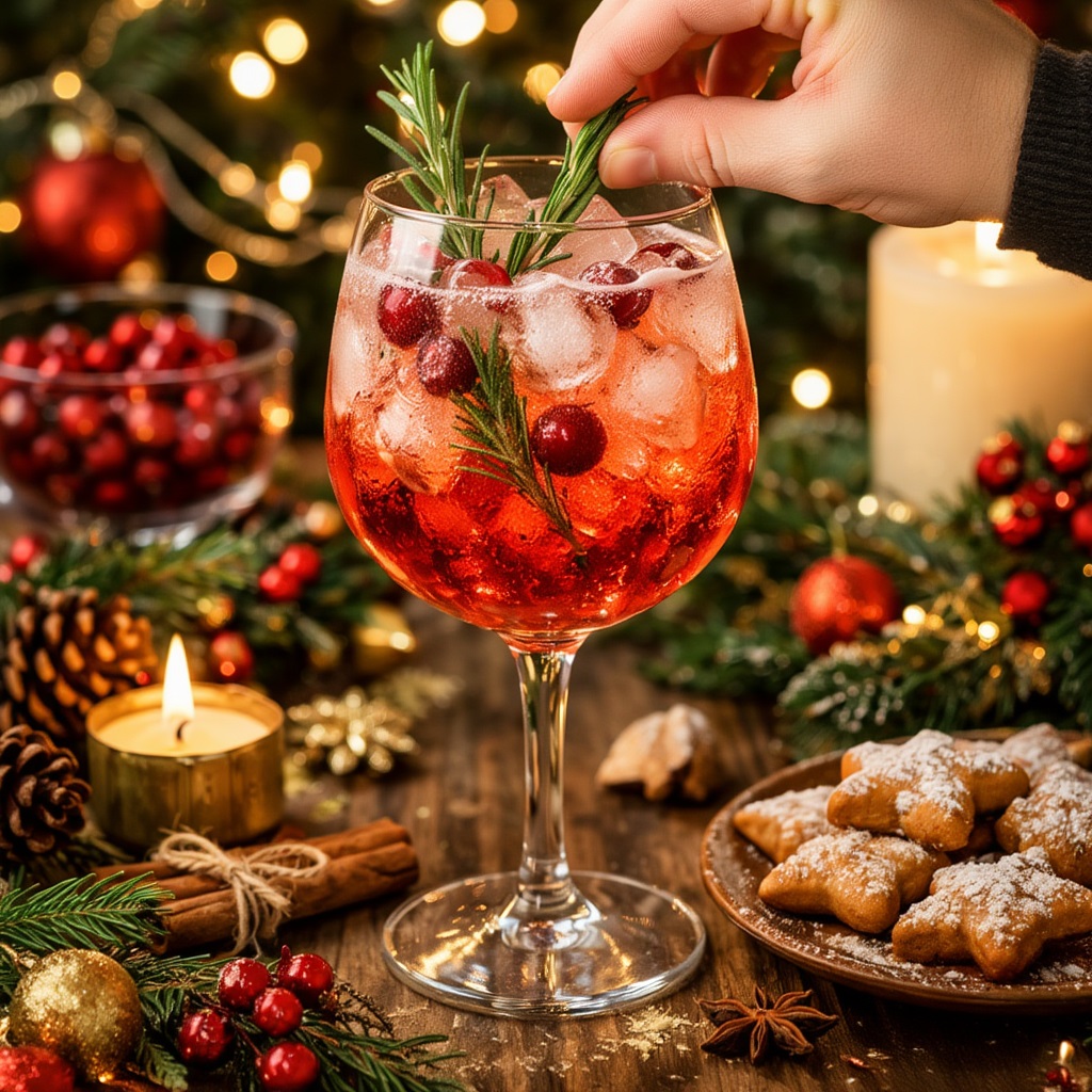 Этот шпритц пахнет зимой: апельсин, клюква/гранат, розмарин, лёгкая пряность. Он получается ярким, нарядным и очень “праздничным” — отличный напиток для встречи гостей и первого тоста.