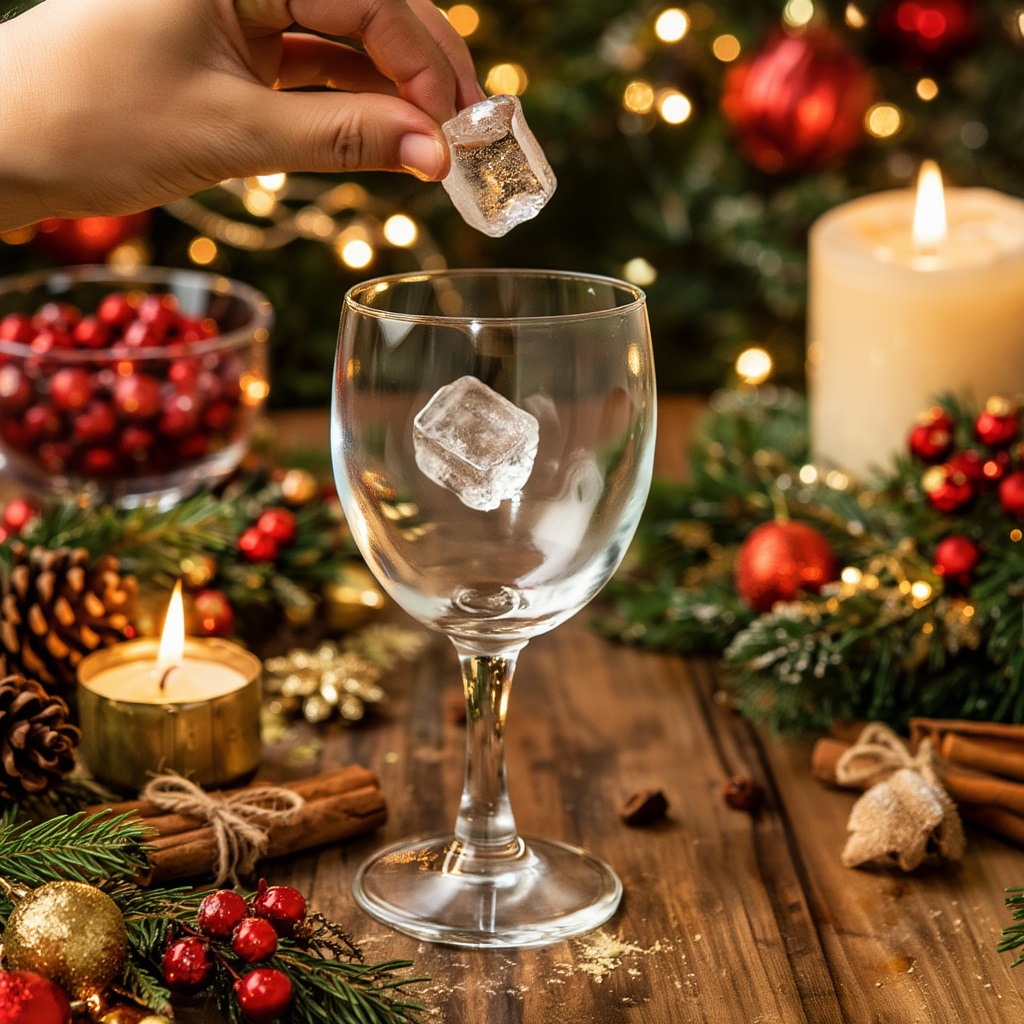 - Наполните большой винный бокал льдом до верха.