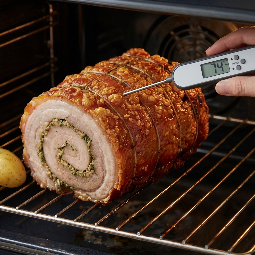 Важный совет: Добавьте шаг — «Примерно за 20-30 минут до готовности можно увеличить температуру до 200°C или включить гриль, чтобы рулет покрылся красивой золотистой корочкой.